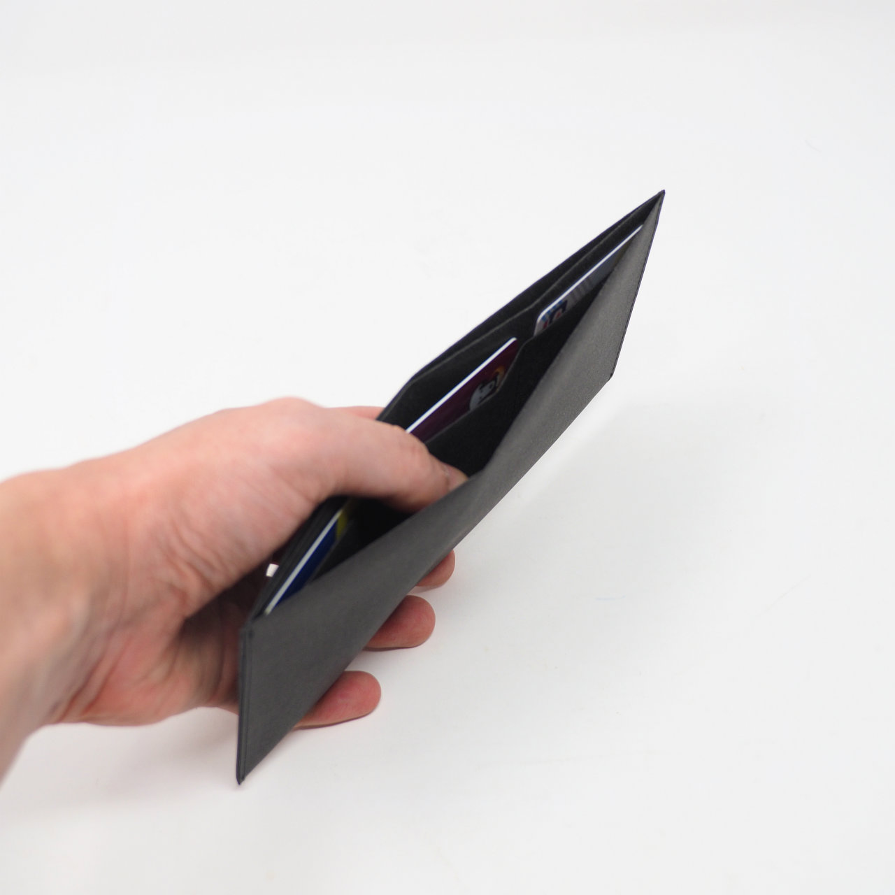 お札とカードを収納するシンプルな長札入れ。
